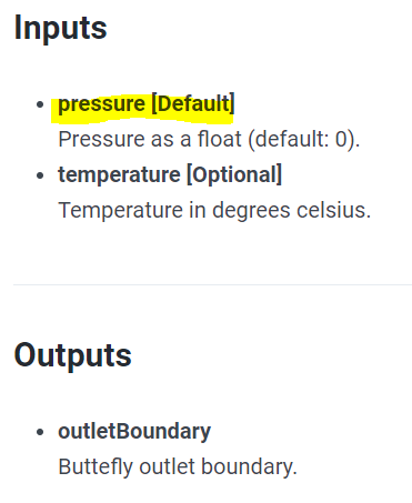 출구 경계를 생성해주는 컴포넌트. 온도 또는 부동 압력을 입력하면 계산에 적용되는데, 이 압력을 입력하지 않으면 기본적으로 0으로 계산된다고 한다. 그래서 예제에서도 딱히 입력해주지 않았나보다.